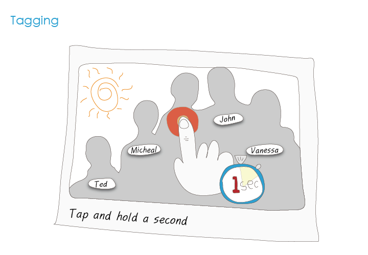 One of the best feature it having is that you can tag image to tap and hold an any point of the image. if you have a group picture, tap and hold each person and tag their name on the picture